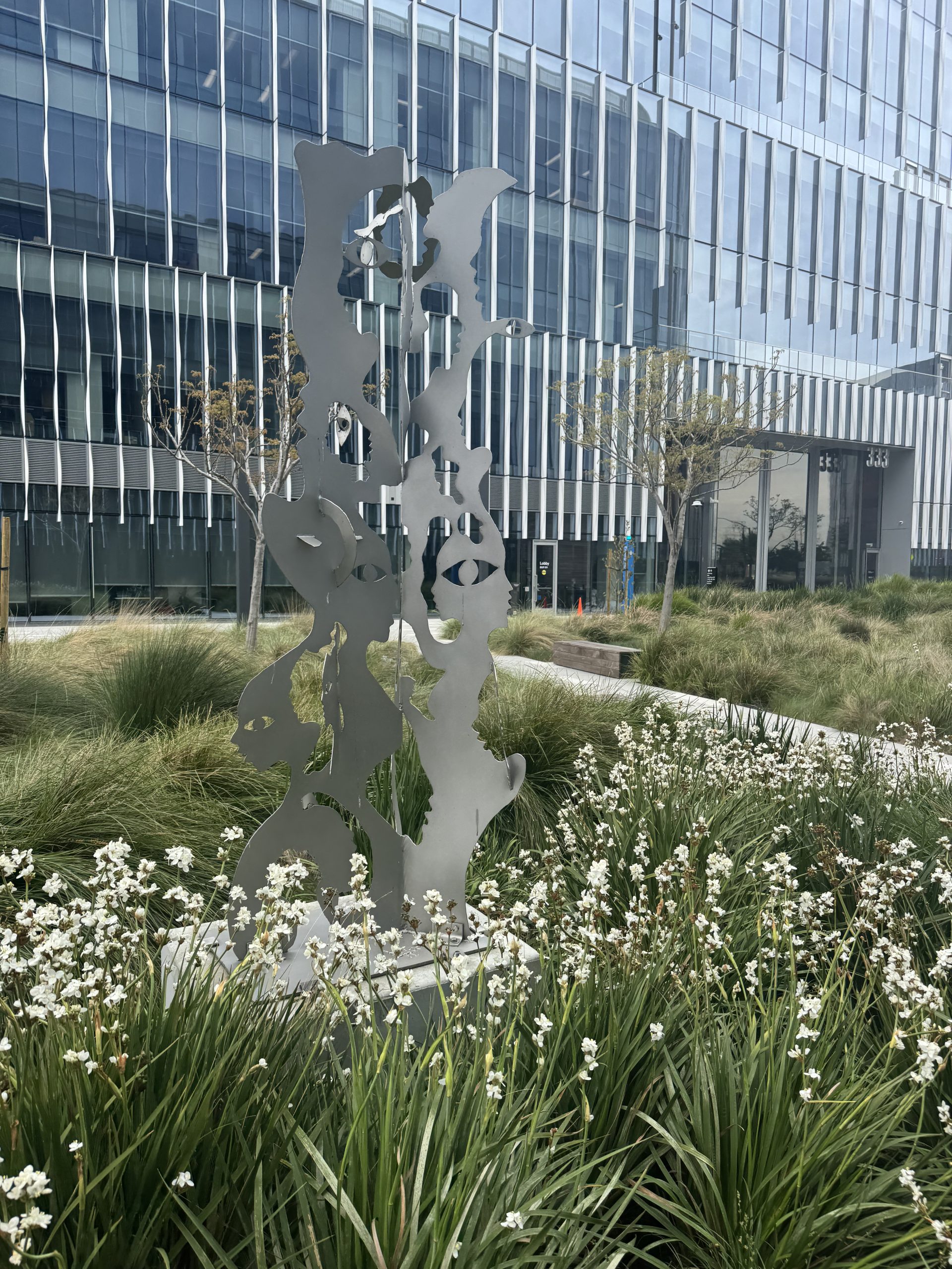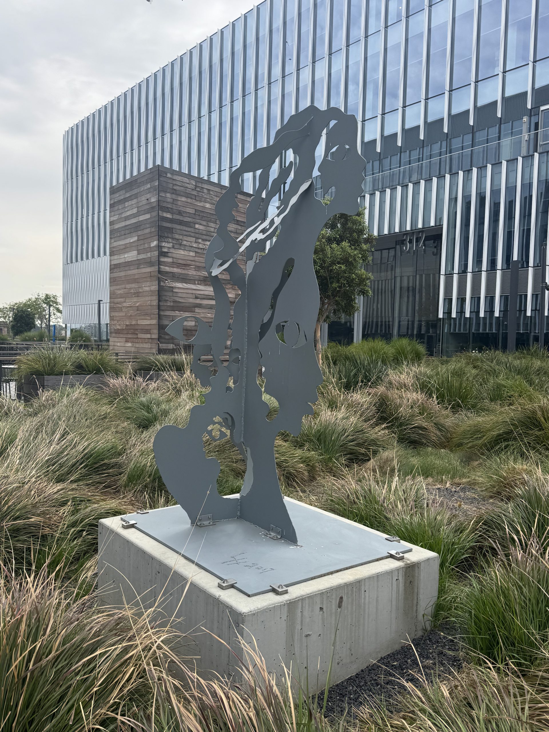 Artist Lonnie Holley has three pieces at the Meta Burlingame campus, each made from steel and weighing 300 pounds. He was born in 1950 in Birmingham, Alabama. Many of his sculptures use “found materials in the oldest tradition of African-American sculpture” (Holley). He has been profiled in The New York Times and his work is in the collections of The Metropolitan Museum of Art, the Smithsonian, and the National Gallery of Art, and on permanent display at the United Nations.